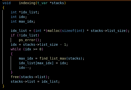t_var *stacks를 매개변수로 받습니다. 이는 리스트와 관련 정보를 포함하는 구조체입니다.