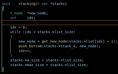 The stacking function is responsible for loading the indexed values into stack A. Here's a detailed explanation of this function: