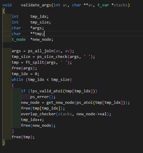 ps_size_check 함수로 공백을 기준으로 나눈 인자의 개수를 확인합니다.