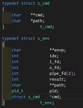 t_env 구조체는 pipex 프로그램의 전체적인 환경과 상태를 관리합니다.